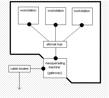 /etc/sysc ¾Æ·¡¿¡ ¿©·¯ºÐÀÇ ³×Æ®¿öÅ©¿¡ ¼ÓÇÑ ´Ù¸¥ ÄÄÇ»Å͵éÀ» À§ÇÑ ¿¹Á¦°¡ ÀÖ´Ù. 1. ip address = 10.0.0.10 Ãß°¡µÇ´Â ÄÄÇ»Å͸¶´Ù ¿©·¯ºÐÀÌ º¯°æÇØ¾ß ÇÒ °ÍÀº ip ÁÖ¼Ò¿Í name ÁÖ¼Ò»ÓÀÌ´Ù. w2.local°ú 10.0.0.20Àº ±× ´ÙÀ½ ÄÄÇ»ÅÍ¿¡¼ »ç¿ëµÉ °ÍÀÌ´Ù. ÀÌÇØ°¡ µÇ´Â°¡? ¶Ç, ¿©·¯ºÐÀÌ pc³ª mac Ŭ¶óÀÌ¾ðÆ® ¶Ç´Â ´Ù¸¥ µµ±¸¸¦ »ç¿ëÇÑ´Ù¸é ¸Å½ºÄ¿·¹À̵ù mini-howto¸¦ Âü°í ÇÑ´Ù. ±âº»ÀûÀÎ Àǵµ´Â ¿©·¯ºÐÀÇ ¸Å½ºÄ¿·¹À̵ù ¸Ó½Å(10.0.0.1)ÀÌ °ÔÀÌÆ®¿þÀÌ ¼ºñ½º¿Í DNS ¼ºñ½º¸¦ °¢ ¸Ó½Å¿¡°Ô Á¦°øÇϵµ·Ï ¼³Á¤ÇÏ´Â °ÍÀÌ´Ù. IP-Masquerading HOWTO´Â ¸Å½ºÄ¿·¹À̵ùÀ» ÀÌ¿ëÇÑ »ç¼³ ³×Æ®¿öÅ©¿¡¼ ºñ ¸®´ª½º ½Ã½ºÅÛÀ» (ÀϹÝÀûÀ¸·Î MS À©µµ¿ì ½Ã½ºÅÛ) ¼³Á¤ÇÏ´Â ¹æ¹ýÀ» ¼³¸íÇÏ´Â ¸Å¿ì ÈǸ¢ÇÑ ¼½¼ÇÀÌ ÀÖ´Ù. http://www.ssc.com/mirrors/LDP/HOWTO/IP-Masquerade-HOWTO.html