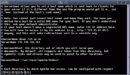 ServerName 210.110.144.161 Ãß°¡Çß´Ù. 9) ÀÌÁ¦ ¾ÆÆÄÄ¡ À¥¼¹ö¸¦ ±âµ¿½ÃÄÑ ÁØ´Ù. ¢¹À¥¼¹ö¸¦ ÁßÁö ½ÃŰ·Á¸é ./apachectl stop