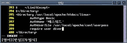 ÅëÇÕµÈ °Å¶ó°í ÇÒ ¼ö ÀÖ´Ù. ÀÌÀ¯¾ß ´õ ¸¹ÀÌ ÀÖ°ÚÁö¸¸... À¯Àú ÀÎÁõÀÇ ¹æ¹ý¿¡´Â ¿©·¯ °¡Áö°¡ ÀÖ´Ù. /etc/passwd¸¦ ÂüÁ¶ÇÏ´Â ¹æ¹ýÀÌ ÀÖ°í, µ¥ÀÌÅÍ º£À̽º¸¦ ÂüÁ¶ÇÏ´Â ¹æ¹ý µîÀÌ ÀÖ´Ù. ÀÌ ¹æ¹ýµéÀº º¸¾ÈÀ» À§Çؼ´Â ÃÖ¼±ÀÇ ¹æ¹ýµéÀÌ´Ù. ÇÏÁö¸¸ ±¸ÇöÇϱⰡ ¾î·Æ´Ù. »ó¾÷¿ë »çÀÌÆ®°¡ ¾Æ´Ï¶ó¸é ¾ÆÆÄÄ¡ÀÇ À¯Àú ÀÎÁõ¹æ¹ýÀÌ ÀûÀýÇÒ °ÍÀ̶ó°í º»´Ù. http.conf(/usr/local/apache/conf/httpd.conf)¸¦ ¿¾î º¸ÀÚ.