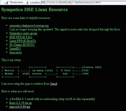 < ±×¸² 1 : Jamal ¾¾ÀÇ »çÀÌÆ® > ¸®´ª½º¿¡¼ PPPoE¸¦ ±¸ÇöÇÏ´Â ´Ù¸¥ ÇÁ·Î±×·¥µéµµ ¸¹ÀÌ ÀÖÀ¸³ª À̵éÀÌ Çѱ¹Åë½ÅÀÇ ADSL ¶óÀο¡ Àû¿ë °¡´ÉÇÑÁö´Â ¾ËÁö ¸øÇÑ´Ù. ´Ù¸¥ PPPoE °ü·Ã ÇÁ·Î±×·¥¿¡ ´ëÇÑ ÀÚ¼¼ÇÑ Á¤º¸¸¦ ¾Ë·Á¸é http://www.rodsbooks.com/network/network-dsl.html ¸¦ Âü°í Çϱ⠹ٶõ´Ù. Kal Lin ¾¾ÀÇ »çÀÌÆ® [ http://www.cs.toronto.edu/~kal/hse/resource.html ]µµ Å« µµ¿òÀÌ µÇ¾ú´Ù. ÀÌ »çÀÌÆ®´Â ÁÖ·Î ·¹µåÇÞ 6.1À» À§ÁÖ·Î Ä¿³Î ÄÄÆÄÀϺÎÅÍ ÀüüÀûÀÎ °³¿ä¸¦ ¼³¸íÇϰí ÀÖ´Ù.