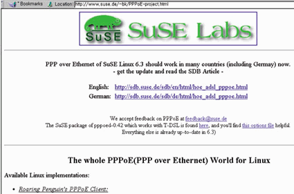 < ±×¸² 3 : SuSE »ç PPPoE À¥ ÆäÀÌÁö > ·¹µåÇÞ¿¡¼ Ä¿³ÎÀ» ÄÄÆÄÀÏÇÏÁö ¾Ê°í PPPoE¸¦