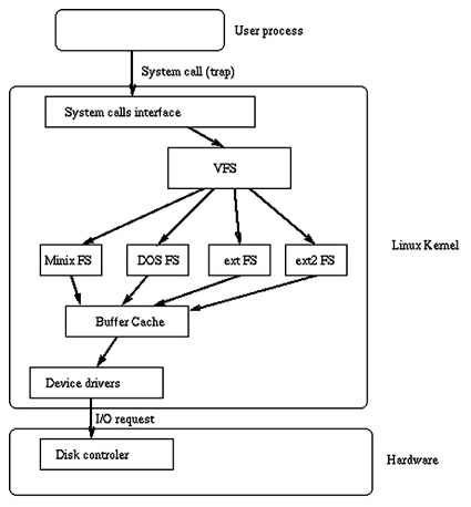 3.1 ¿ø¸®(Principle) ¸®´ª½º Ä¿³ÎÀº ÆÄÀÏ¿¡ ´ëÇÑ ½Ã½ºÅÛ ÄÝÀÌ ÀÖÀ» ¶§ »ç¿ëµÇ¾îÁö´Â ¹öÃò¾ó ÆÄÀÏ ½Ã½ºÅÛ °èÃþÀ» °®°í ÀÖ´Ù. VFS´Â ÆÄÀϰú °ü·Ã ½Ã½ºÅÛ ÄÝÀ» ´Ù·ç´Â Áß°£ °èÃþÀ̸ç ÀÔÃâ·ÂÀ» ó¸®Çϱâ À§ÇØ ¹°¸®ÀûÀÎ ÆÄÀÏ ½Ã½ºÅÛ Äڵ忡¼ ÇÊ¿äÇÑ Æã¼ÇÀ» ºÎ¸¥´Ù. ÀÌ·¯ÇÑ °£Á¢ ¸ÞÄ¿´ÏÁòÀº ¿©·¯ °³ÀÇ ÆÄÀϽýºÅÛ ÇüÅÂÀÇ ÅëÇÕÀ» ½±°Ô Çϱâ À§ÇØ À¯´Ð½º °è¿ ¿î¿µÃ¼Á¦¿¡ ÈçÈ÷ »ç¿ëµÈ´Ù. ¾î¶² ÇÁ·Î¼¼½º°¡ ÆÄÀÏ °ü·Ã ½Ã½ºÅÛ ÄÝÀ» ÀÏÀ¸Å³ ¶§ Ä¿³ÎÀº VFS¿¡ Æ÷ÇÔµÈ Æã¼ÇÀ» ºÎ¸¥´Ù. ÀÌ Æã¼ÇÀº ±¸Á¶¿Í µ¶¸³ÀûÀÎ Á¶ÀÛÀ» ½ÇÇàÇÏ°í ±× ¿äûÀ» ¹°¸®ÀûÀÎ ÆÄÀϽýºÅÛÄڵ忡 Æ÷ÇÔµÈ Æã¼ÇÀ¸·Î ¿¬°áÇØ ÁØ´Ù. ¹°¸®ÀûÀÎ ÆÄÀϽýºÅÛ Äڵ尡 ±¸Á¶¿¡ ÀÇÁ¸ÇÏ´Â µ¿ÀÛÀ» ´ã´çÇÑ´Ù. ÆÄÀÏ ½Ã½ºÅÛ ÄÚµå´Â ÀåÄ¡¿¡ ´ëÇØ I/O¸¦ ¿äûÇϱâ À§ÇØ ¹öÆÛ ij½¬ Æã¼ÇÀ» »ç¿ëÇÑ´Ù. ÀÌ ±¸Á¶°¡ ¾Æ·¡ ±×¸²¿¡ ¼³¸íµÇ¾î ÀÖ´Ù.