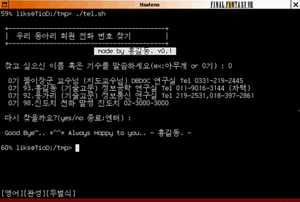 ¡®tel.txt¡¯´Â ÀÌ·± ½ÄÀ¸·Î ÀÔ·ÂÇÏ¸é µÈ´Ù. 1±â 96.¸¶¸®¿À µ¥ÀÌÅÍ º£À̽º ¿¬±¸½Ç Tel 018-388-8888 À§ÀÇ ÇÁ·Î±×·¥Àº ¼öÁ¤ÀÇ ¿©Áö°¡ ¸¹ÀÌ ÀÖ´Ù. ¿©·¯ °¡Áö ´õ ³ªÀº ¹æ¹ýµéÀ» °í¾ÈÇØ º¸´Â °Íµµ ±¦ÂúÀ» °ÍÀÌ´Ù. (tel.sh¿¡ ½ÇÇà ±ÇÇÑÀ» ÁØ ÈÄ ½ÇÇà °¡´ÉÇÑ ÆÐ½º¿¡ ³Ö¾îÁÖ¸é µÈ´Ù. ÀÚ½ÅÀÇ ½Ã½ºÅÛÀÇ ´Ù¸¥ À¯Àúµé¿¡°Ôµµ ½ÇÇà ±ÇÇÑÀ» ÁÖµµ·Ï ÇÏÀÚ. ^^;)