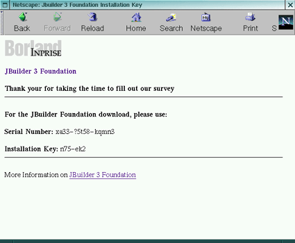 ¡®Activation Key¡¯¸¦ ¾ò¾î¾ß ÇÑ´Ù. ¡®Jbuilder¡¯¸¦ ¼³Ä¡ÇÒ ¶§ ÇÊ¿äÇÏ´Ï ¸Þ¸ð¸¦ ÇØµÎ°Å³ª ÆÄÀÏ·Î ÀúÀåÇØ µÎ±â ¹Ù¶õ´Ù.
