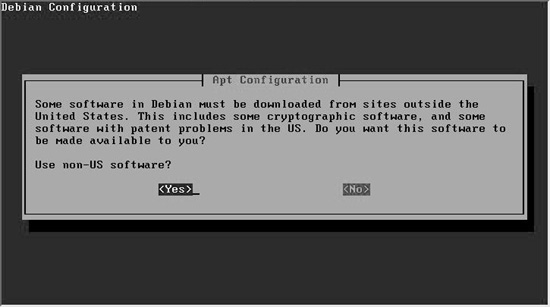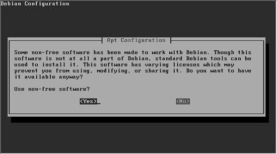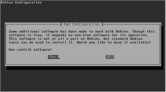 ±× ´ÙÀ½À¸·Î ºÐ·ùÇÏ´Â ¹æ¹ýÀ¸·Î´Â ¶óÀ̼¾½º¿¡ µû¸¥ ºÐ·ùÀÌ´Ù. ±âº»ÀûÀ¸·Î GPL°ú °°Àº ÀÚÀ¯ ¶óÀ̼¾½ºÀÇ °æ¿ì main, ÀϹÝÀûÀÎ ¹èÆ÷ÀÇ °æ¿ì contrib, »ó¾÷¿ë ¶óÀ̼¾½ºÀÇ °æ¿ì non-free·Î ±¸ºÐÇÑ´Ù. µ¥ºñ¾È ¹èÆ÷º» CD¿¡´Â main¸¸ÀÌ Æ÷ÇԵǾî ÀÖÀ¸¸ç, ÀÌ¿ÜÀÇ ÆÐŰÁö´Â Á÷Á¢ ¹Þ¾Æ¼ ¼³Ä¡ÇØ¾ß ÇÑ´Ù. [Yes]¸¦ ¼±ÅÃÇÑ´Ù.
