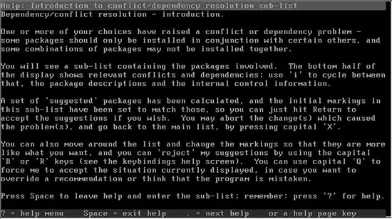 ¿©±â¼ ½ºÆäÀ̽º ۸¦ ´·¯ÁÖ¸é ÆÐŰÁö¸¦ ¼±ÅÃÇϴ ȸéÀÌ ³ª¿Â´Ù. ¿øÇÏ´Â ÆÐŰÁö¸¦ ¼±ÅÃÇÏ·Á¸é ¡°/¡±Å°¸¦ ´·¯¼ ¿øÇÏ´Â À̸§À» Àû¾îÁÖ¸é µÈ´Ù. ¿øÇÏ´Â ÆÐŰÁö¸¦ ¼±ÅÃÇÑ »óÅ¿¡¼ ¼³Ä¡¸¦ ÇÏ·Á¸é ¡°+¡±Å°¸¦ ´·¯¼ ¼±ÅÃÇÏ¸é µÈ´Ù. ÇØÁ¦ÇÏ·Á¸é ¡°-¡±Å°¸¦ ´©¸¥´Ù. ¾î¶² ÆÐŰÁö¸¦ ¼±ÅÃÇϸé ÀÇÁ¸¼º ¹®Á¦¿¡ °É¸®¸é ¾Æ·¡¿Í °°Àº ȸéÀÌ ³ªÅ¸³´Ù. ÀÇÁ¸¼ºÀ̶õ ¼±ÅÃÇÑ ÆÐŰÁö¸¦ ¼³Ä¡ÇÏ°í ½ÇÇàÇϱâ À§Çؼ ÇÊ¿äÇÑ ´Ù¸¥ ÆÐŰÁöµé°úÀÇ °ü°è¸¦ ÀǹÌÇÑ´Ù. ÀÏ·Ê·Î XFree86 ¼¹ö¿ë ÆùÆ®¸¦ ¼³Ä¡Çϸé XFree86ÀÌ ÇÊ¿äÇÏ´Ù ´øÁö, ¾Æ´Ï¸é °í½ºÆ®ºä(ghostview)¸¦ ¼³Ä¡ÇÏ·Á¸é °í½ºÆ®½ºÅ©¸³Æ®(ghostscript)°¡ ÇÊ¿äÇÏ´Ù´ø°¡ ÇÏ´Â °ÍÀÌ´Ù. ÀÇÁ¸¼º ¹®Á¦¿¡ °É¸®¸é ¾Æ·¡¿Í °°Àº ȸéÀÌ ³ª¿À´Âµ¥ ¼±ÅÃÇÑ ÆÐŰÁö¸¦ ¼³Ä¡Çϱâ À§Çؼ ²À ÇÊ¿äÇÑ ÆÐŰÁöµéÀº ÀÚµ¿À¸·Î ¼±ÅõȴÙ. ¹Ø¿¡ º¸¸é ¡°suggest¡±¶ó°í ³ª¿À´Â °ÍÀÌ ÀÖ´Â°Ô À̰ÍÀº ¸» ±×´ë·Î ÃßõÇÏ´Â °ÍÀ̹ǷΠ¼³Ä¡ÇÏÁö ¾Ê¾Æµµ ¹«¹æÇÏ´Ù. ¼³Á¤À» ¸¶ÃÆÀ¸¸é ¿£Å͸¦ Ä£´Ù. ÀÇÁ¸¼ºÀÌ °è¼Ó °É¸®´Â °æ¿ì ¿£Å͸¦ °è¼Ó ÃÄÁÖ¸é ÇØ°áµÈ´Ù.
