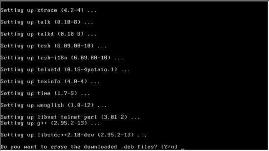 ÆÐŰÁö¸¦ ´Ù ¹ÞÀº »óÅ¿¡¼ ¼³Ä¡´Â À§ÀÇ È¸é°ú °°ÀÌ ÁøÇàµÈ´Ù. À§ÀÇ È¸éÀÇ ÇÏ´ÜÀ» º¸¸é ¼³Ä¡°¡ ¸ðµÎ ³¡³ »óÅ¿¡¼ ´Ù¿î·Îµå(dounload) ¹Þ¾Ò´ø ÆÐŰÁö ÆÄÀϵéÀÎ .deb ÆÄÀÏÀ» Áö¿ï °ÍÀÎÁö¸¦ ¹°¾îº»´Ù. ¿£Å͸¦ ´·¯ Áö¿ìµµ·Ï ÇÑ´Ù.