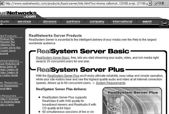 Èûµå³ª ¾Æ·¡ URL ¿¡ ÀÖ´Ù. À§ »çÀÌÆ®¿¡¼ RealSystem Server Basic