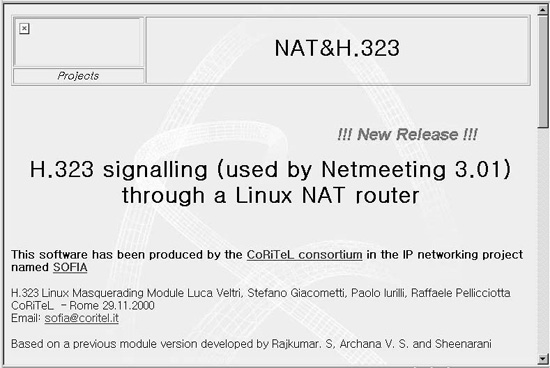 3. Âü°í »çÀÌÆ®/ ÀÚ·á - http://www.coritel.it/coritel/ip/sofia/nat/nat2/ nat2.htm Netmeeting¿ë ip masq Ä¿³Î ¸ðµâ °³¹ß ȨÆäÀÌÁö´Ù. ÇÊÈ÷ ¹æ¹®Çϱ⠹ٶõ´Ù.