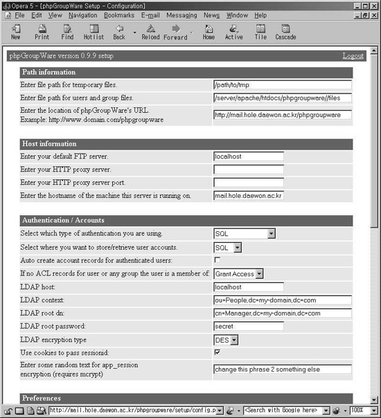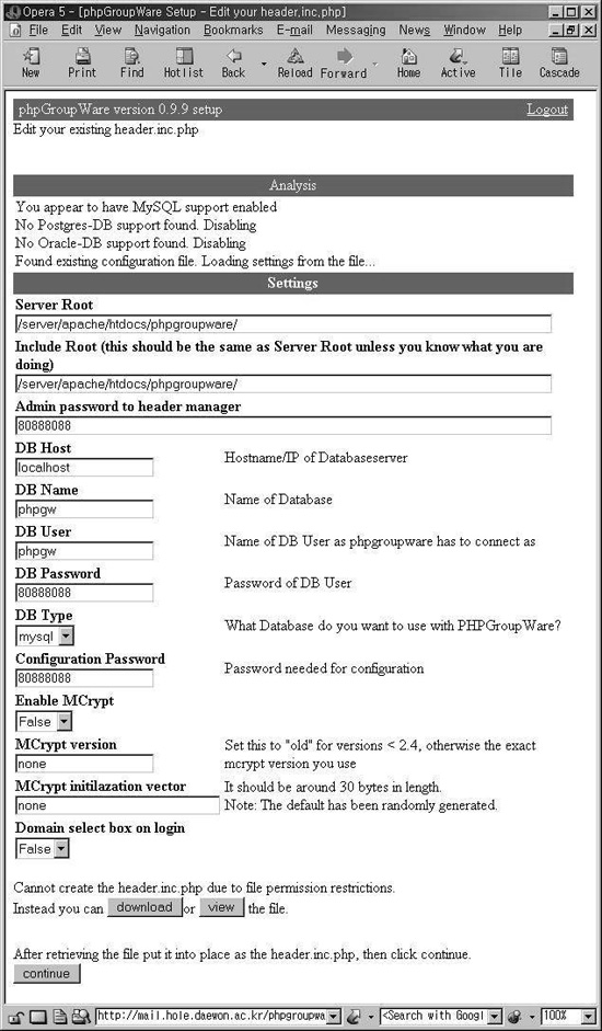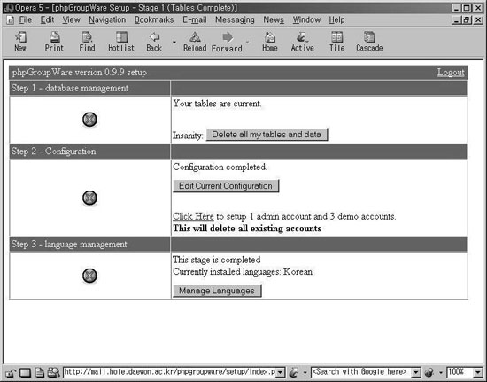 Áö±Ý ±îÁö PHPGroupWare ÀÇ È¯°æÀ» ¼³Á¤ÇÏ¿´´Ù.