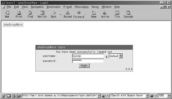 ´ë·«ÀûÀÎ ¼³Á¤ÀÌ ³¡³ª°í http://webserver/phpgroupware/ ·Î(¼³Ä¡µÈ µð·ºÅ丮) À̵¿À» ÇÑ ´ÙÀ½ µåµð¾î ·Î±×ÀÎÀ» ÇÑ´Ù. ¼³Á¤ÀÌ Á¤»óÀûÀ¸·Î µÇ¾úÀ¸¸é ·Î±×ÀÎÇÒ ¼ö ÀÖ´Ù. ¿©±â¼ °ü¸®ÀÚ ±ÇÇÑÀ» °¡Áø »õ·Î¿î »ç¿ëÀÚ¸¦ ¸¸µé°í ¿¹Àü °ÍÀº Áö¿ö¹ö¸®´Â °ÍÀÌ ¾Æ¸¶ ÁÁÀ» °ÍÀÌ´Ù.
